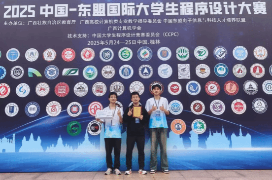 2025年5月25日,由广西壮族自治区教育厅联合广西高校计算机类专业教学指导委员会、中国东盟电子信息与科技人才培养联盟共同主办的2025中国—东盟国际大学生程序设计竞赛在桂林电子科技大学举行。本次大赛吸引了来自华南理工大学、山东大学、湖南师范大学、华中师范大学等76所高校的220支队伍同场竞技。经过现场5小时的紧张角逐,由禁漫天堂 *禁漫天堂 刘佳老师指导,冯伟军(计科2211)、林嘉昱(研信24)、蒋雨晟(数学2302)三位同学组成的“...