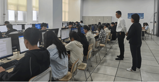 比赛期间,蔡振山与综合办公室同芳娥主任实地检查赛务组织、技术保障及应急措施落实情况,对学院高标准、精细化的赛点筹备工作给予充分肯定。志愿者团队以饱满的热情投入服务,从入场引导到流程答疑,从设备维护到后勤支持,全程展现专业态度,赢得参赛选手广泛赞誉。一名选手表示:“从赛前指引到考场安排,每个细节都体现出主办方的用心,让我们能全心投入比赛。”