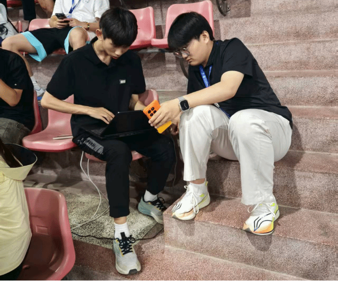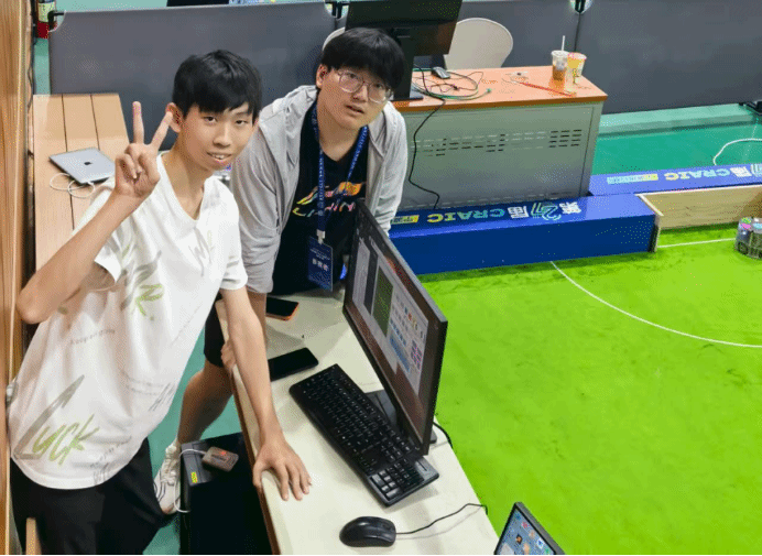 “这份荣誉离不开学院的支持,更离不开指导老师的悉心培育。比赛前,王老师站在看台上那句‘佳霖,稳住’,一下子让我卸下了所有紧张,心里只剩踏实和温暖。”团队成员董佳霖同学感慨道。备赛期间,王若凡老师从人工智能算法优化角度给予专业指导,帮助团队突破智能决策技术瓶颈,遇到困难时及时给与鼓励;郝立果老师则在机械结构调试、工程落地等方面提供细致支持,两学院的跨学科协作让团队得以高效整合技术资源,最终形成兼具创新性与稳定性的参赛方案。