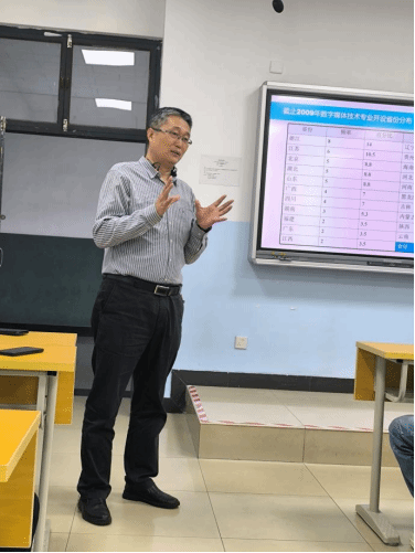 随后,菅光宾老师详细介绍了数字媒体技术专业在国内外的开设情况,深入讲解了专业的培养目标、课程设置以及就业方向等内容。他通过详实的数据,向新生们展示了数字媒体技术专业的广阔前景和无限可能。