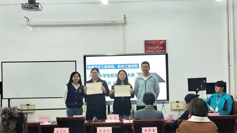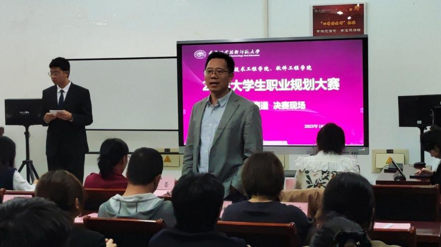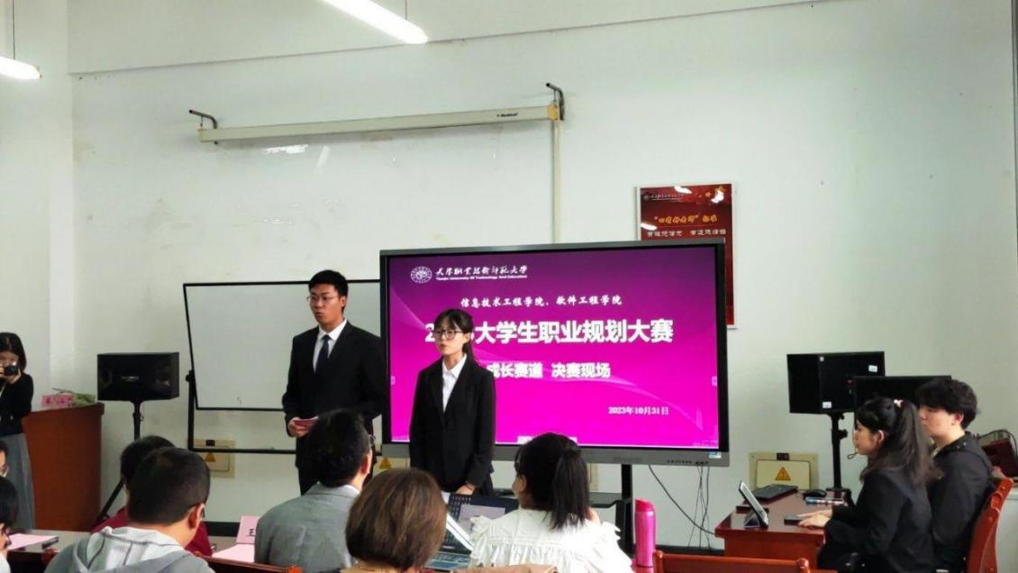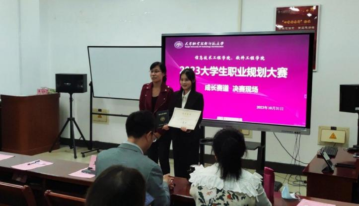 本次比赛分为就业赛道和成长赛道,分别于10月27日和10月31日在a教1012举办。比赛分为主题陈述(5分钟)、PPT展示、评委提问(2-3分钟)三个环节。院党委副书记王蕾、软件工程系主任彭英慧、副教授罗梅、网络工程系主任张建勋、大数据系青年教师李敏及学院辅导员出席比赛并担任评委。